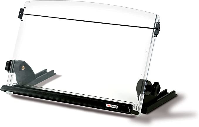 3M ADJUSTABLE DOCUMENT COPY CLIPS, EMBEDDED MONITOR* MINIMIZES HEAD AND NECK MOVEMENT, 150-SHEET PAPER CAPACITY FOR BOOKS, ELASTIC WIRE RAILS KEEP PAGES OPEN, 14 INCHES WIDE, BLACK (DH630)