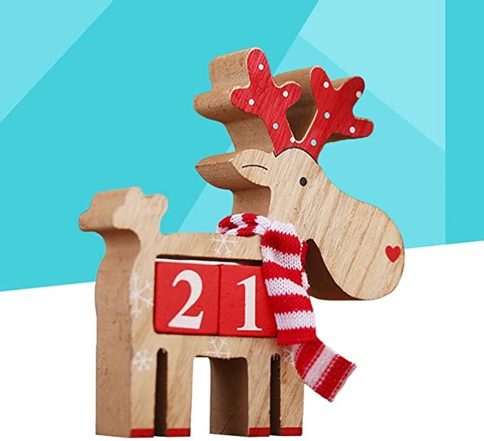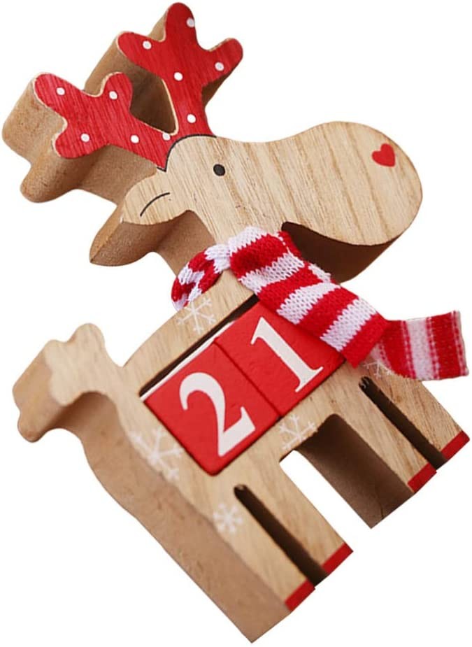 Amosfun Wooden Christmas Advent Countdown Calendar Reindeer Calendar Christmas Tabletop Ornaments Decorations