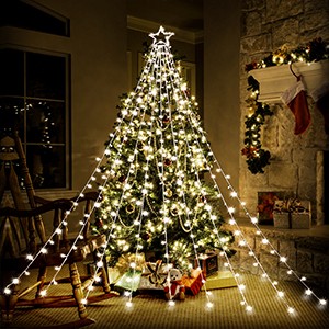 FUNIAO decorative outdoor star string light will light up your Christmas and holiday seasons! With 16.4ft extension cord, upgraded 12.6in iron topper star and 9 strands10.4in long light strings. You can drape the lights or hanging them sideways more like a shooting star. Perfect for decorating Christmas Tree, backyard, porches, patio, garden, wall, window, bedroom, living room, wedding, and party, etc. It is also an ideal gift for your family and friends.