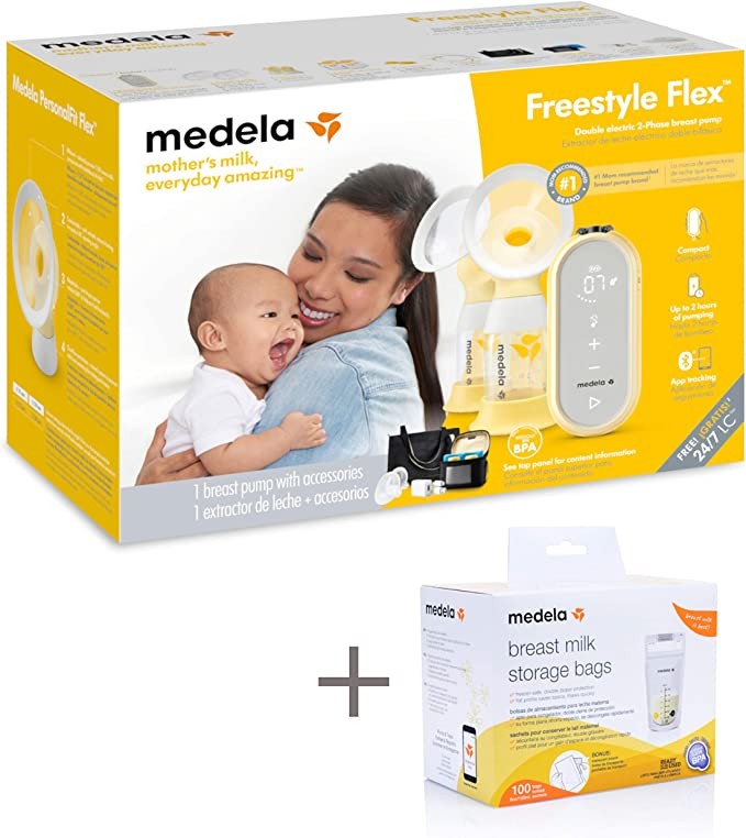 Medela Freestyle Flex Breast Pump, Comes with 100 Storage Bags, Closed System, Quiet Handheld Portable Dual Electric Breast Pump, Mobile Smart Pump with Touchscreen LED Display
