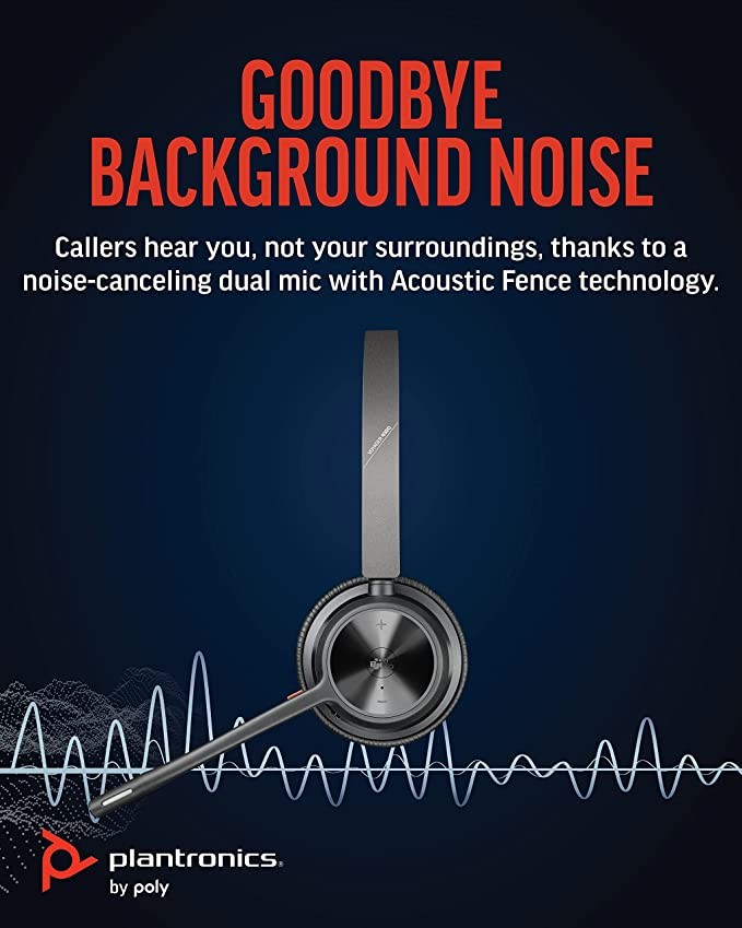 Plantronics Voyager 4320 UC Cordless Headphones + Charging Station (Poly) - Stereo Headphones, Noise-Cancelling Microphone, Long Battery Life, Bluetooth Connectivity PC/Mac/Phone, Team Certified