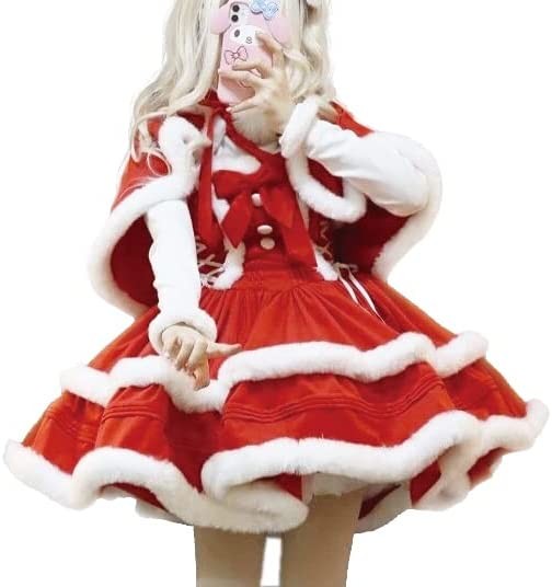 Women's Christmas Dress Skirt and Hooded Cloak Match