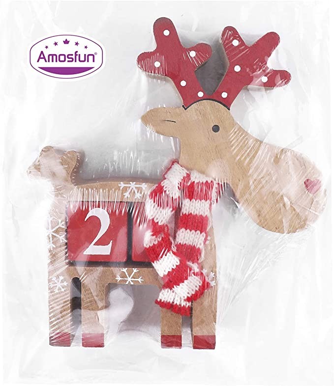 Amosfun Wooden Christmas Advent Countdown Calendar Reindeer Calendar Christmas Tabletop Ornaments Decorations