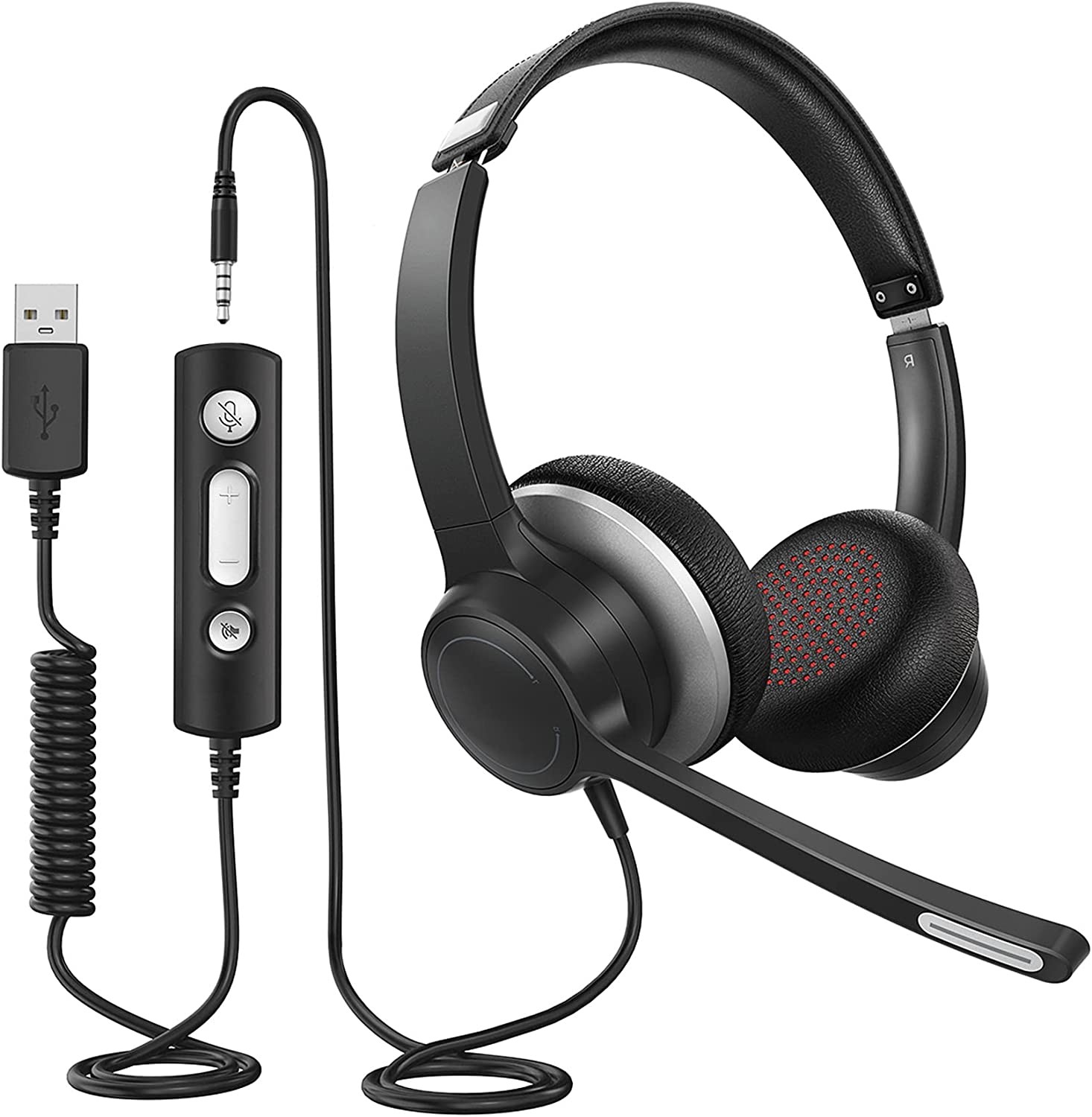 • ? Wide Compatibility ? USB Headphone with Microphone comes with 3.5mm plug or USB port, no driver required. Plug and play. The USB headset with microphone is compatible with most platforms and operating systems - Windows 2000/7/8/10/XP/Vista, Mac OS X, iOS, Android, Tablets. The power cable is equipped with a microphone mute button and volume control (Note: USB mode only). USB headset with microphone is the best choice for work and study.