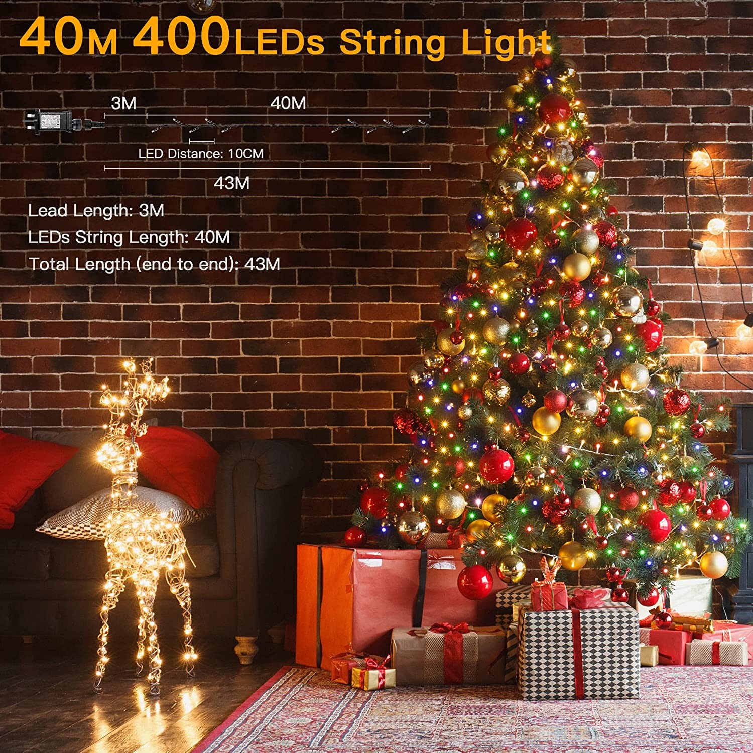 Ollny Outdoor Christmas Tree Lights - 40M 400LED Christmas Fairy Lights Mains Powered with 8 Light Modes/Timer Waterproof String Lights Plug in for Outside Indoor Garden Xmas Tree Decorations