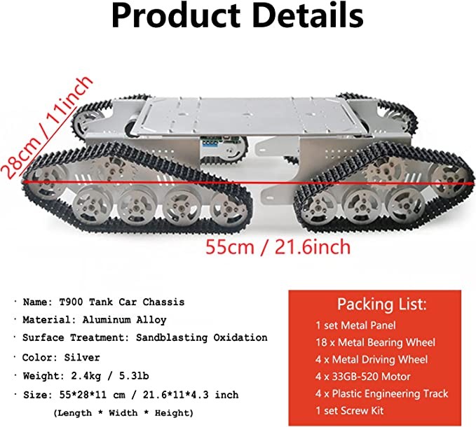 【Why you need it】Used for learning robot car chassis knowledge or electronics embedding knowledge. By programming the controller, you can remotely control the robot tank chassis via bluetooth wifi or PS2. With 4 pieces of DC high torque motors, this car chassis can carry a lot of weight.