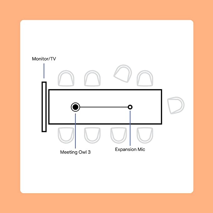The Owl Labs expansion microphone is for the Owl 3 - expands the audio range to more space with a microphone orientation of 8 feet (2.5 meters).