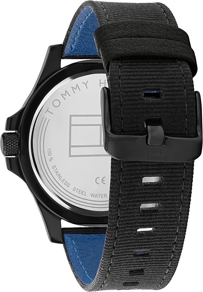 Tommy Hilfiger Men's Analog Quartz Watch, Leather Strap 1791993, Black, One Size, Lace-Up.